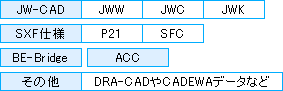 JW-CAD JWW JWC JWK / SXF仕様 P21 SFC / BE-Bridge / ACC / その他 DRA-CADやCADEWAデータなど