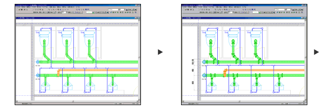 管材変更、継手の種類や倍率の変更、寸法値と連動してのルート移動など、作画後の編集機能も満載。