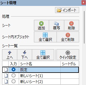 別図面のシート設定をインポートした活用もできます。