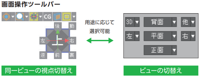 「CG」表示切替ボタンを押下することで通常ビュー表示と3DCGを簡単に切替えられます。