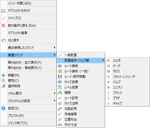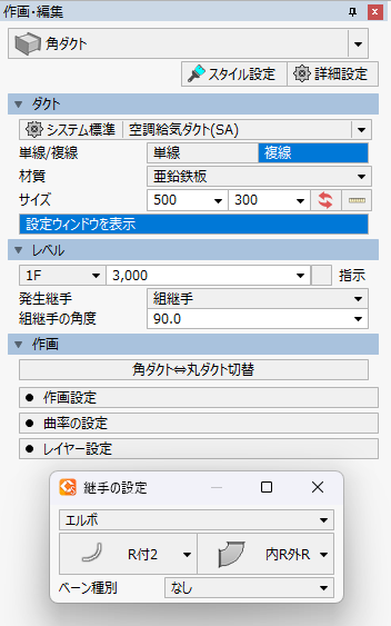 継手・バルブ・ダンパなどの種類を編集できます。