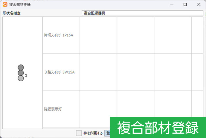 スイッチやコンセントは自由な組み合わせで登録し、作画できます。