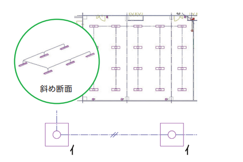 電気複線ルートのほか、ルートに対するインサートや耐震基準に沿った吊りも作画できます。