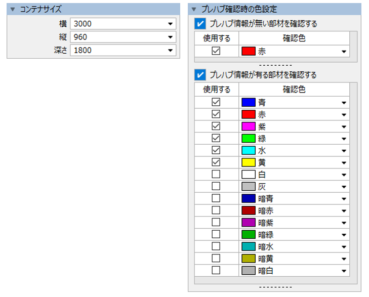 指定したコンテナサイズに丸ダクトが収まるように自動でプレハブ化します。また、プレハブ化情報を付与した後、プレハブ加工を行う範囲(ユニット)を色分け表示できます。