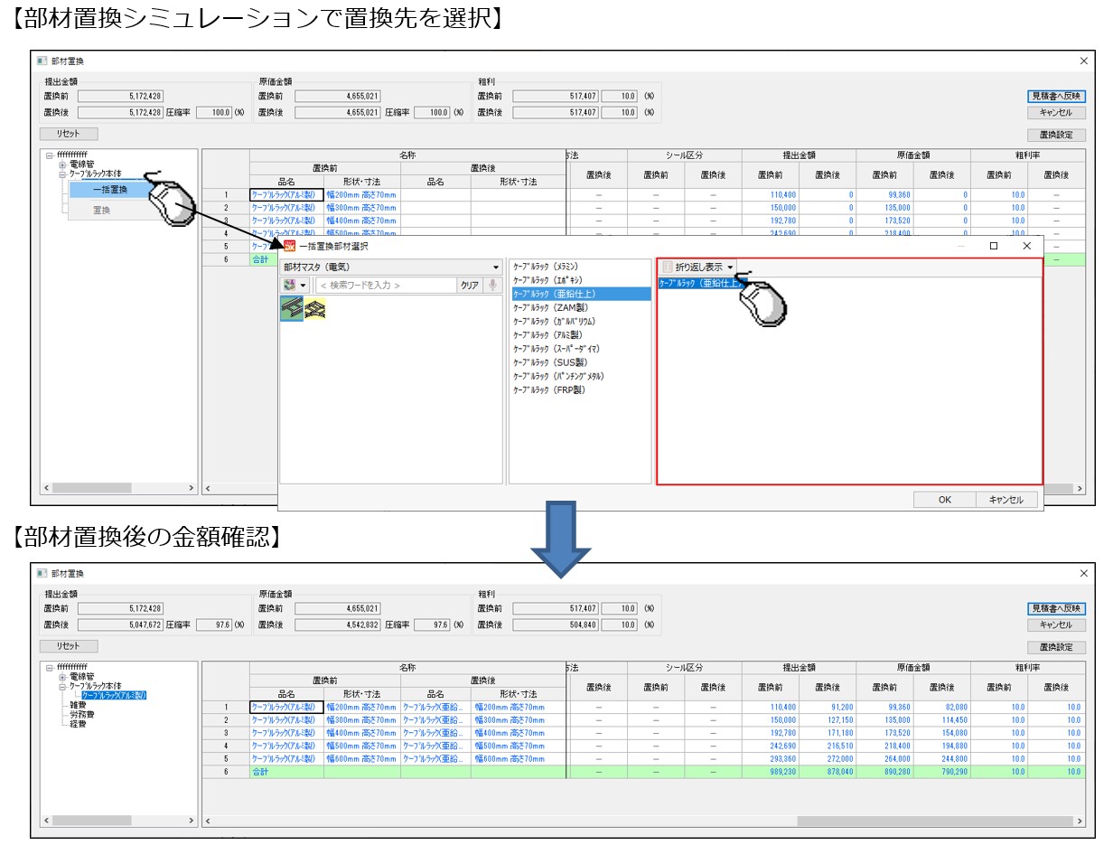 変更している場合は、置換後の金額が変動します。